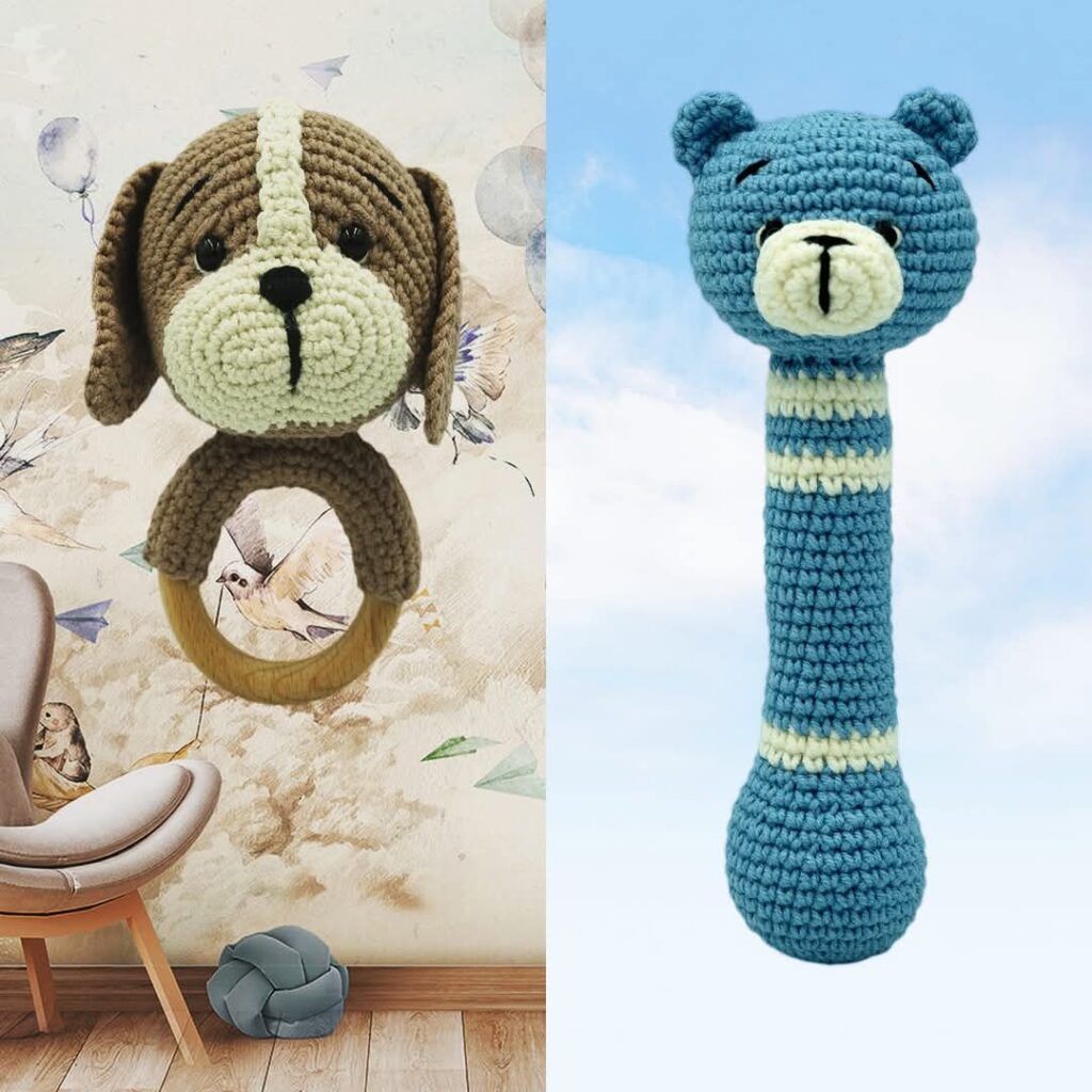 Wszystkie prace wykonane są z wysokiej jakości certyfikowanych włóczek, wypełniaczy i tkanin.